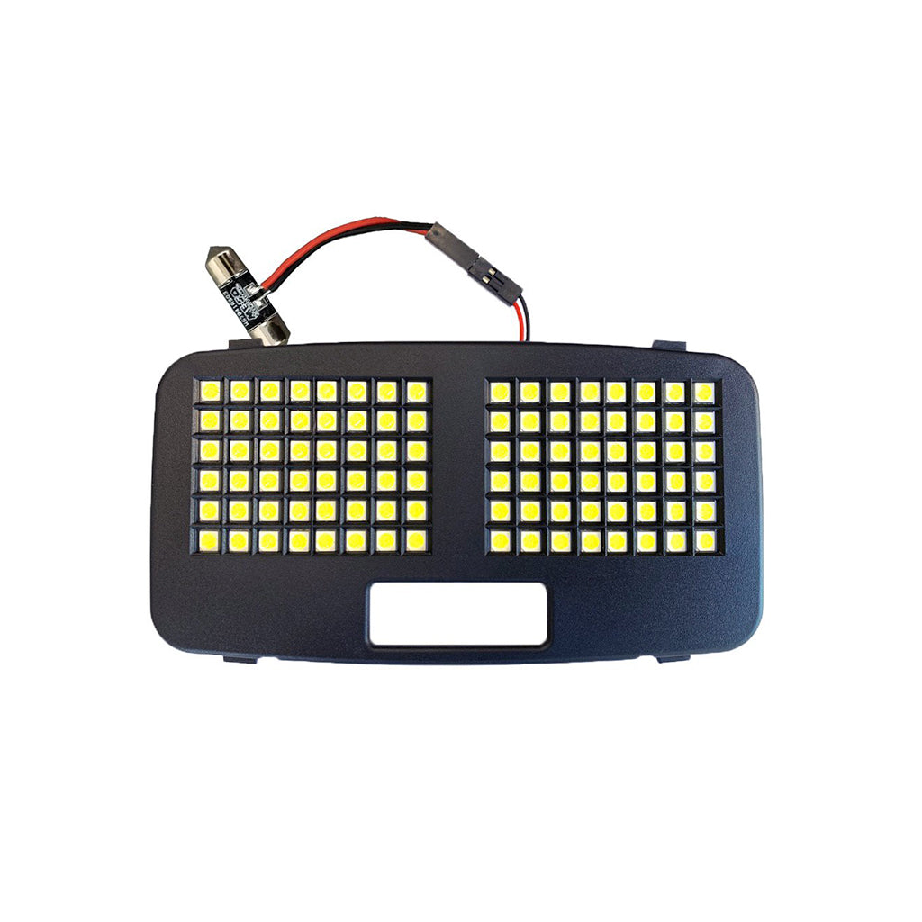 SINGLE COLOR. No buttonThe brightest and baddest dome light on the market! With close to 100 LED's, this thing is BRIGHT. New injection molded housings for an OEM fit and finish. This is not your conventional single bulb LED swap, but a complete panel that replaces your original clear lens. Comes with a festoon style bulb adapter for complete plug and play installation.