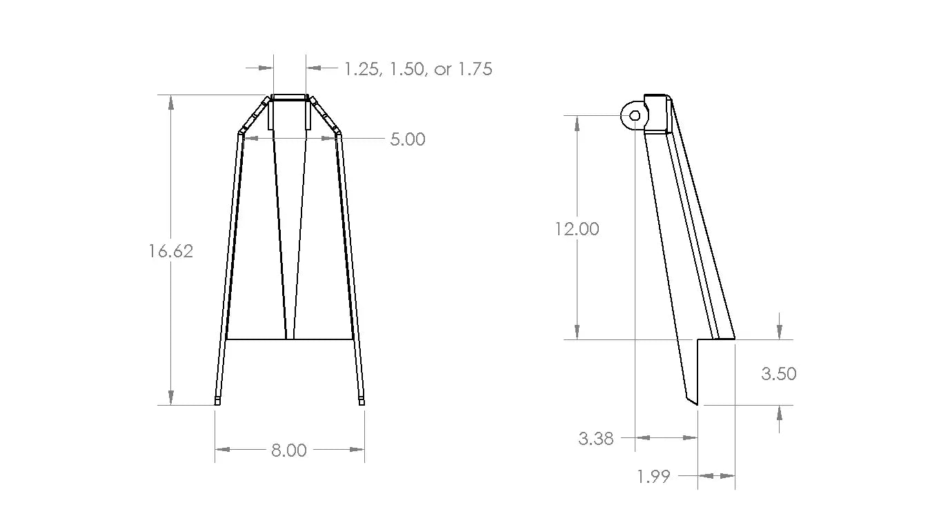 Made from 1/4" thick steel with a 15° inward angle, each tower stands 12" tall from the frame at the mounting center and reaches 2" inward toward the engine bay. Ideal for rock crawlers, custom trucks, and trail rigs that demand reliable suspension mounting.