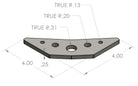 This 4" 90-degree 5-hole gusset is laser cut from 1/4" steel plate and built for strength and versatility. Each leg measures 4" along the right angle, with a trimmed inside corner for easy fitment around welds—perfect for tight joints on roll cages, bumpers, or chassis work. The five-hole design not only cuts weight but also serves as convenient attachment points for bungee cords or light-duty tie-downs, making it as practical as it is strong.