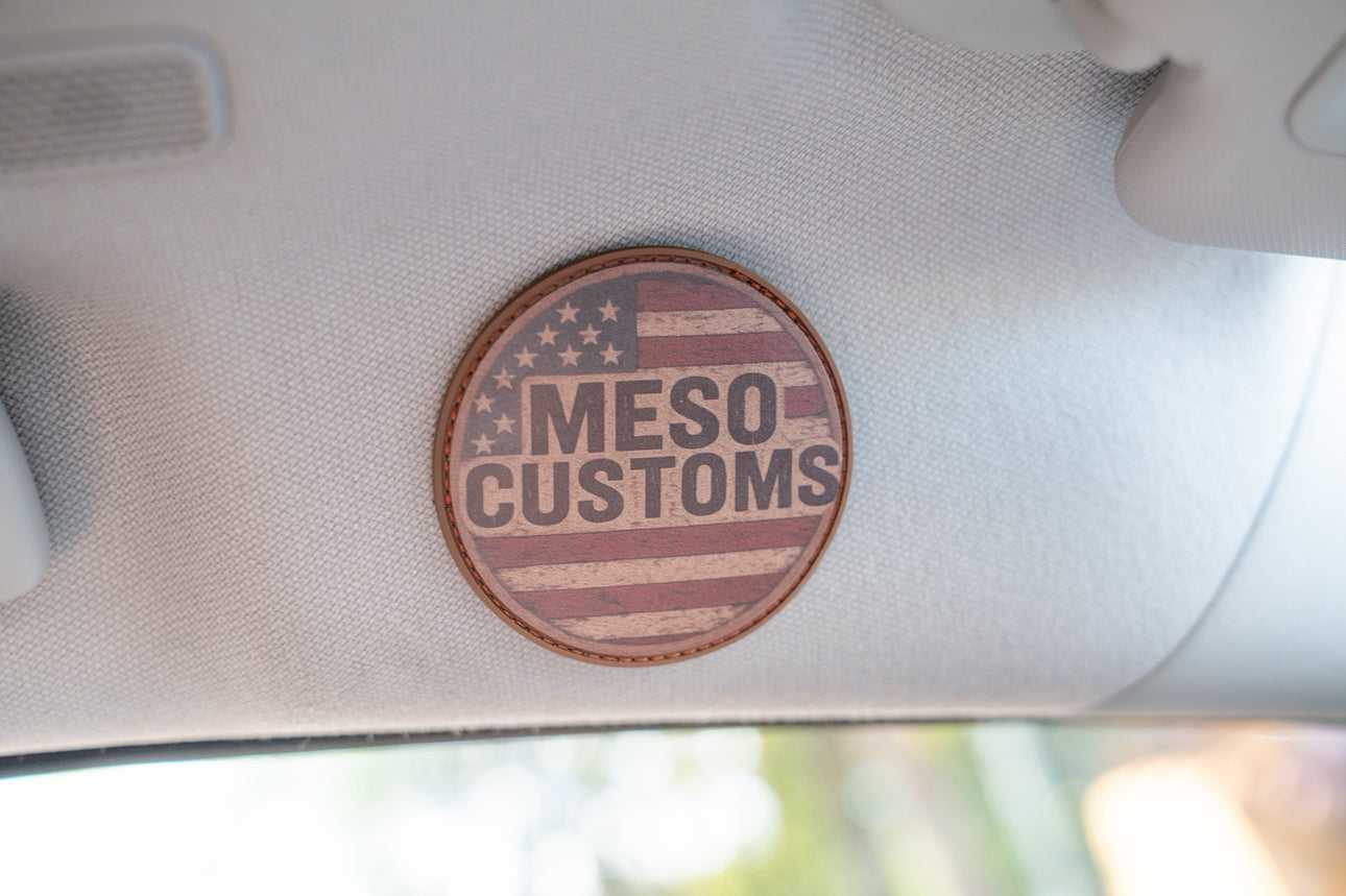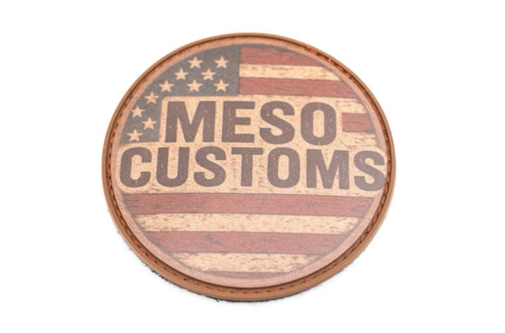 MESO and MERICA'!  This retro-colored circle patch features our logo with old glory.  Velcro backing makes it easy to place on hats, jackets, bags, or anywhere you want.