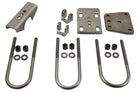 The kit is complete with three U-bolts (two standard 3.25" and one wider 3.875"), hardware, and everything else you’ll need to mount 2.5" leaf springs. The cast-side U-bolt plate is cut from 1/2" steel for extra strength, and the curved shock brackets are made to last. Works with most GM Dana 60 front axles, and some Dodge D60s as well — give us a call if you’re working with a Dodge axle to confirm fit.