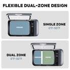 Flexible Dual Zone Design- Portable fridge with detachable partition Design, GO20 provides 2 separate zones for refrigeration and freezing, which can be operated with 2 digital panels at the same time.