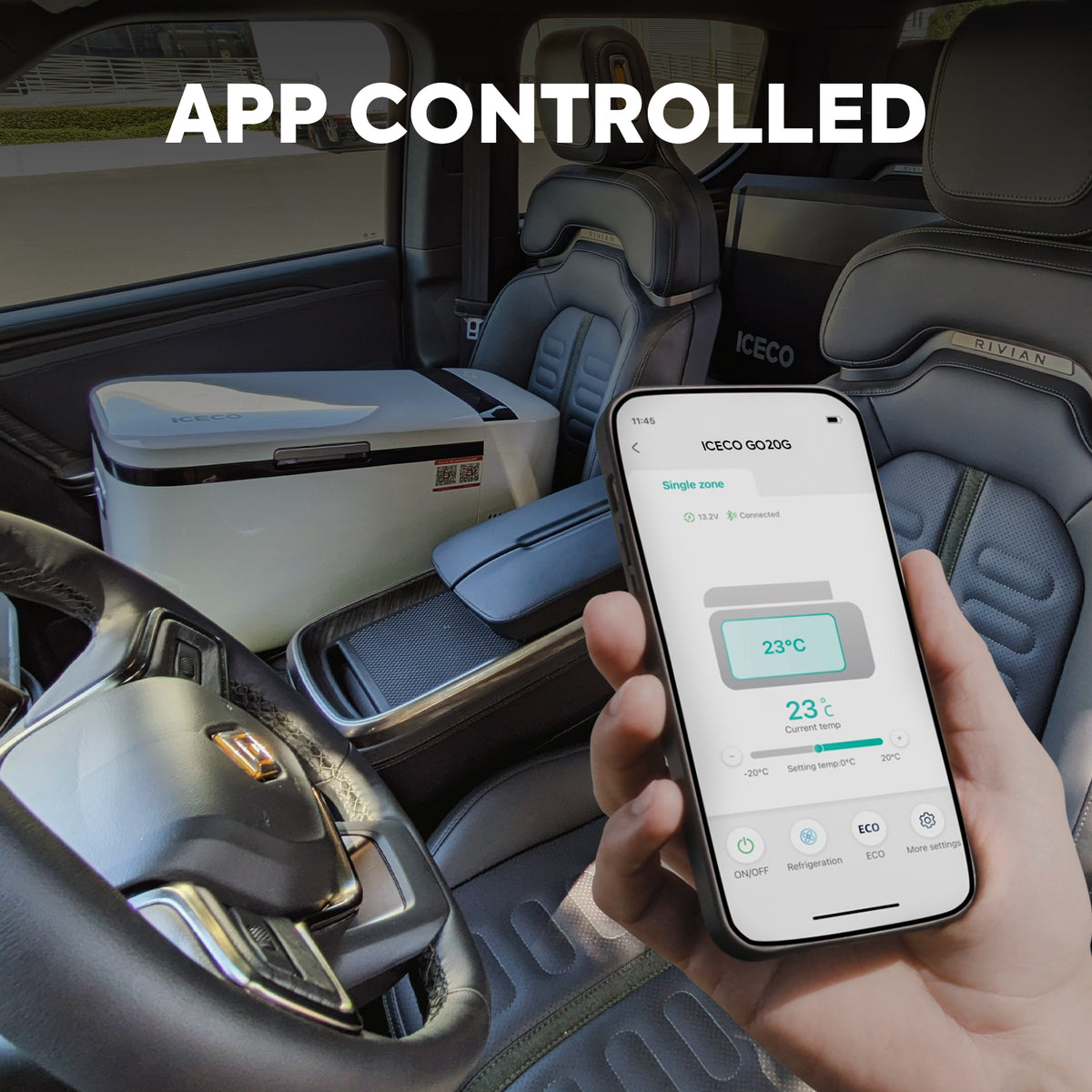 Flexible Dual Zone Design- Portable fridge with detachable partition Design, GO20 provides 2 separate zones for refrigeration and freezing, which can be operated with 2 digital panels at the same time.