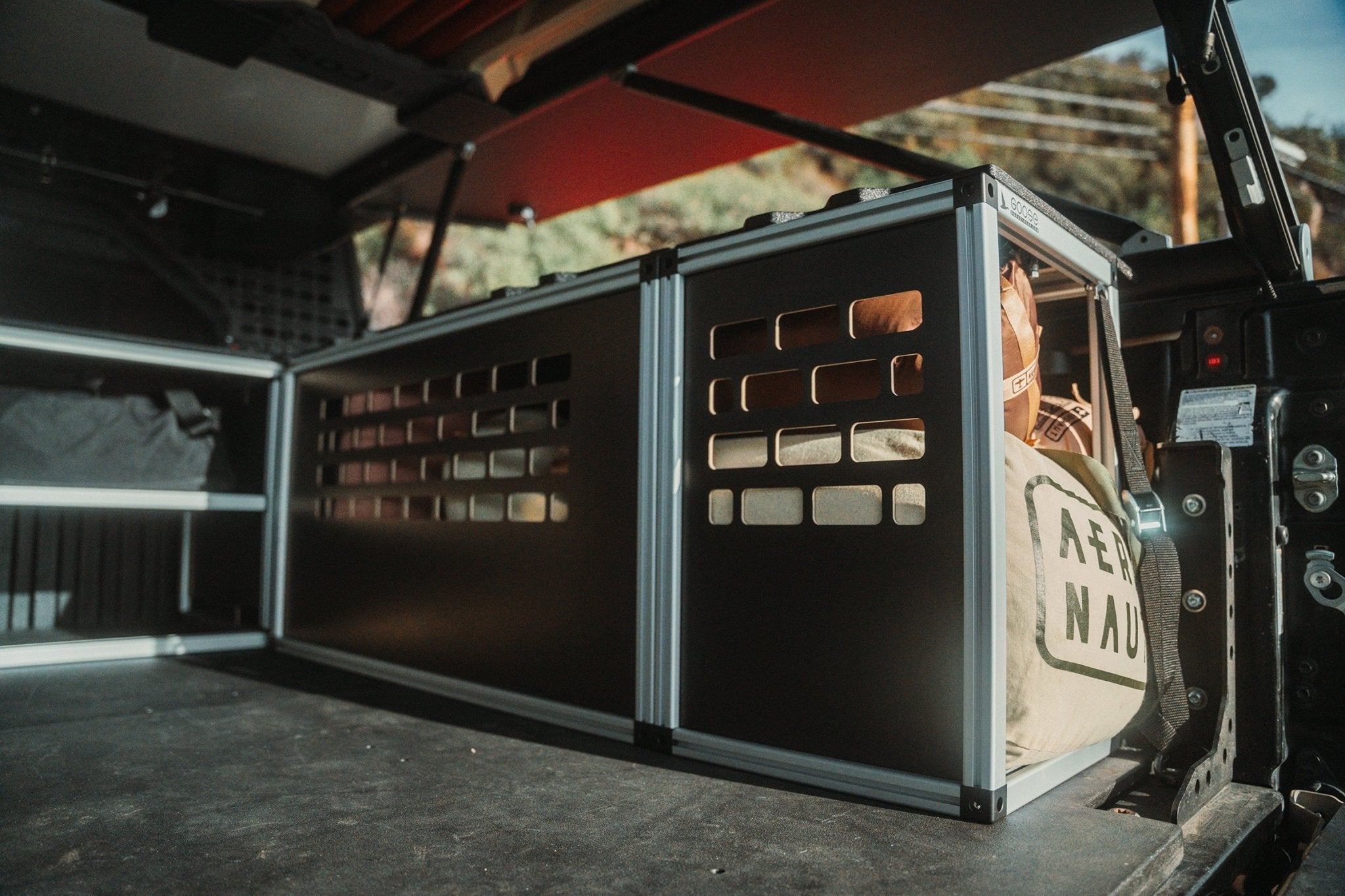 Bed Cargo Module – A secure, strap-in storage solution utilizing factory anchor points. Compatible with optional Step 22 Stingray Flat Box bags for enhanced organization.