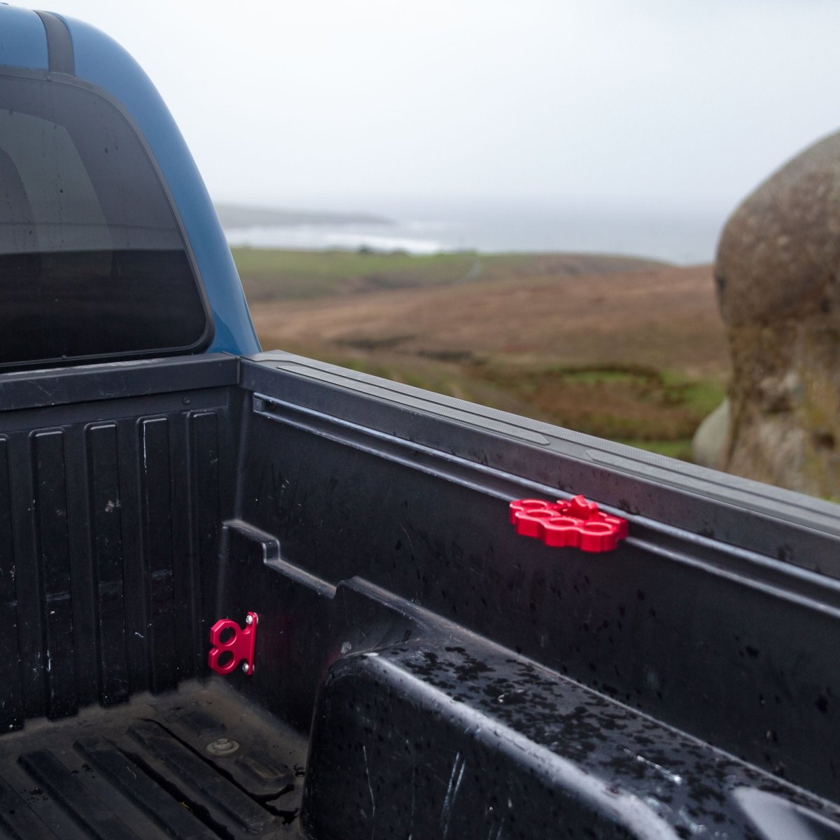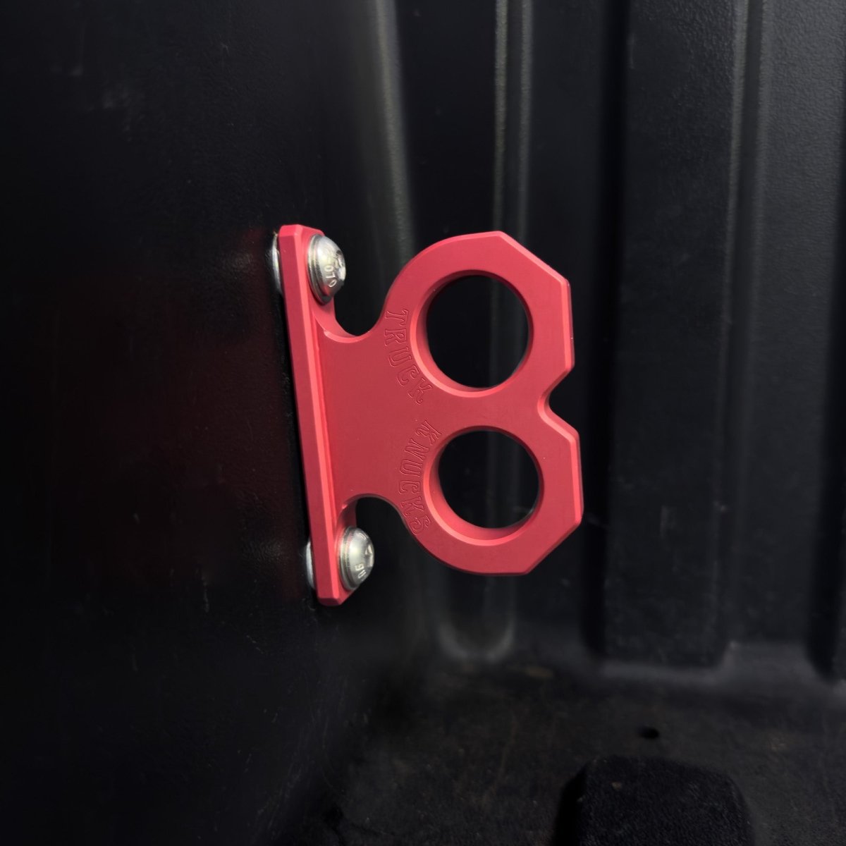 Meet the Two Knuck: a bold, two-finger brass knuckle-inspired tie-down point for Toyota Tacoma and Tundra. Precision CNC-machined from billet aluminum and anodized for corrosion resistance and added durability, the Two Knuck offers both rugged style and exceptional functionality. With two separate tie-down points cleverly integrated into its design, the Two Knuck is perfect for securing your gear while making a statement.