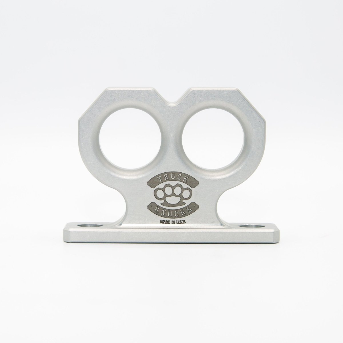 Meet the Two Knuck: a bold, two-finger brass knuckle-inspired tie-down point for Toyota Tacoma and Tundra. Precision CNC-machined from billet aluminum, tumbled finish and clear anodized for corrosion resistance and added durability, the Two Knuck offers both rugged style and exceptional functionality. With two separate tie-down points cleverly integrated into its design, the Two Knuck is perfect for securing your gear while making a statement.