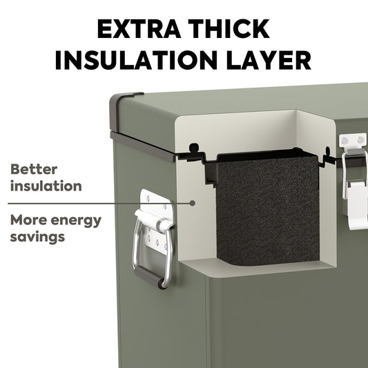 Impact -Resistant Caps - As an overland fridge,VL65 provide superior corner strength and impact resistance for long-lasting use. The shockproof design makes the refrigerator could withstand the hard environment. Sturdy and durable platinum paint shell for long-term using, heavy-duty corner-cap, built-in spring steel handles.